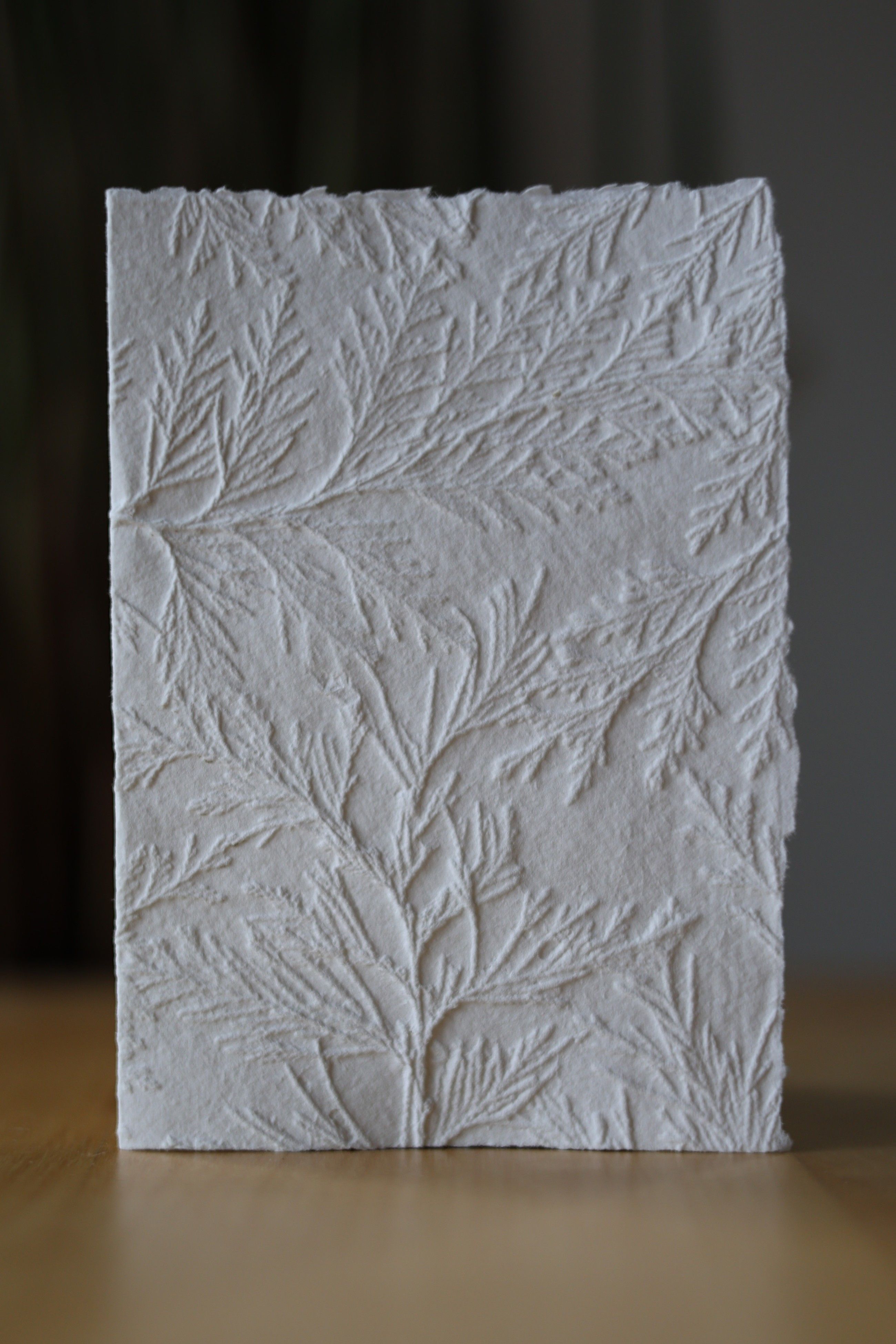 Handgeschöpfte Doppelkarte geprägt 10,5x 15cm mit beschriftbarem weissem Umschlag und Einlageblatt